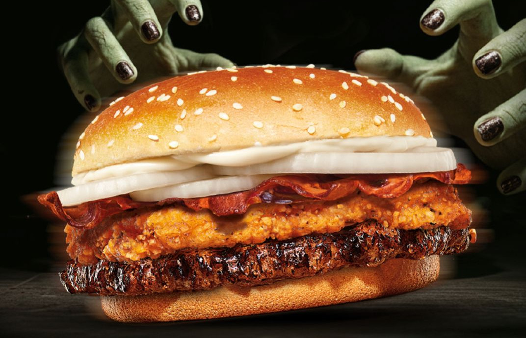 A rede lançou uma edição especial chamada “Combo Freaking”, que combina frango, carne bovina e bacon em um único pão, com uma divertida homenagem aos traumas das fantasias infantis.